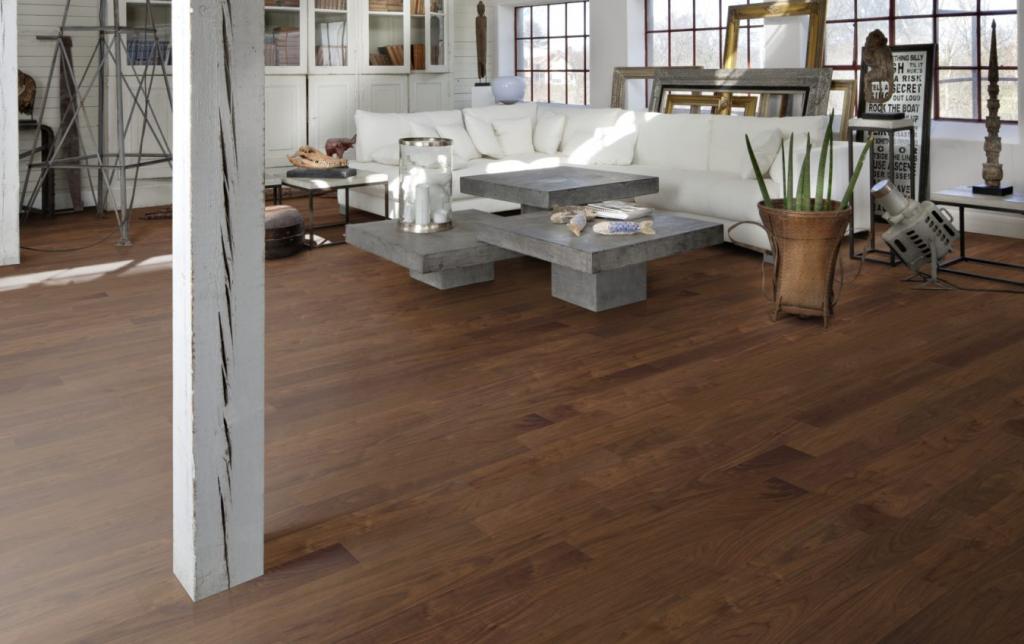 El grano oscuro de estas lujosas tablas de nogal en este piso de una sola franja de la Colección Unity se acentúa por los tonos más claros de la madera. El acabado de laca satinada le da al piso un aspecto pulido que resalta el carácter natural de la madera. El acabado uniforme protege la madera del uso diario, sin añadir brillo artificial. El biselado de cuatro lados en los bordes garantiza un aspecto y una sensación de tabla completa y clásica.