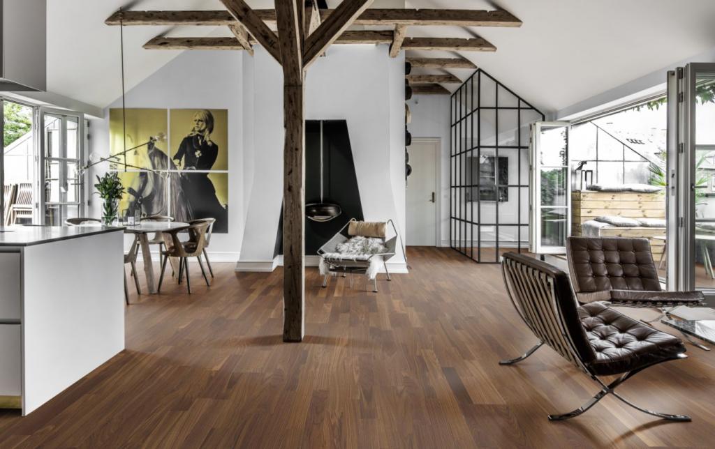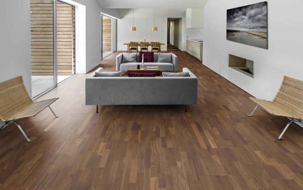 Nogal Montreal 3 Lamas, Acabado barniz satinado.