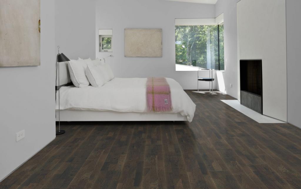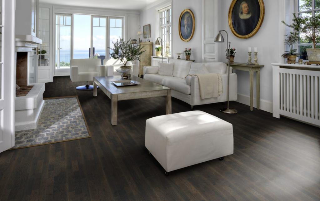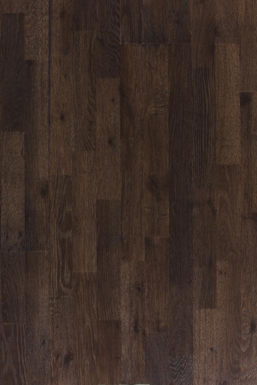 Roble 3 lamas, Acabado barniz mate, negro, Cepillado.