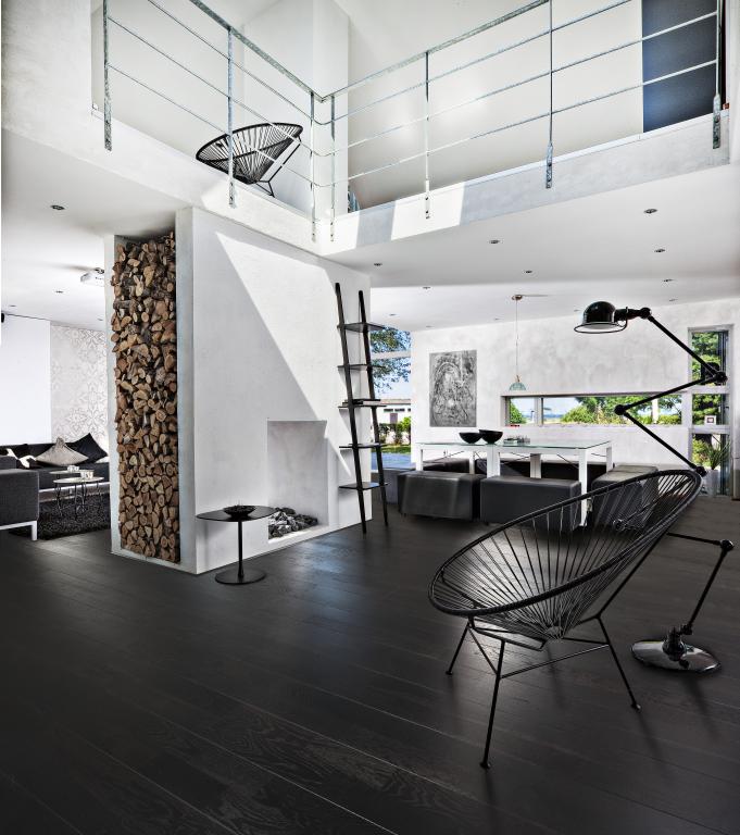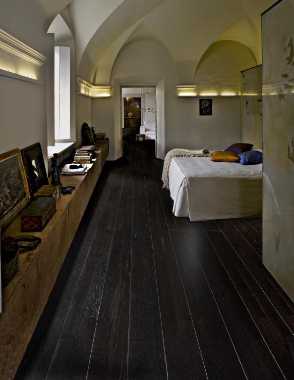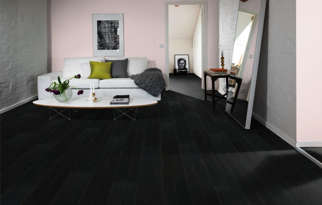 Roble 2 Lamas. Acabado Barniz Mate, Cepillado, Biselado, Negro.