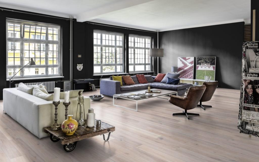 El acabado blanco blanqueado en este piso de roble de una sola lama de la Colección Artisan equilibra las variaciones de color que ocurren naturalmente, que van desde el gris jaspeado hasta la lavanda plateada descolorida, para un efecto refinado pero rústico. Cada tabla se cepilla cuidadosamente para resaltar el carácter del grano y resaltar la textura natural de la madera. El biselado de cuatro lados en los bordes garantiza un aspecto y una sensación de tabla completa y clásica. El raspado a mano realza el aspecto desgastado del suelo.